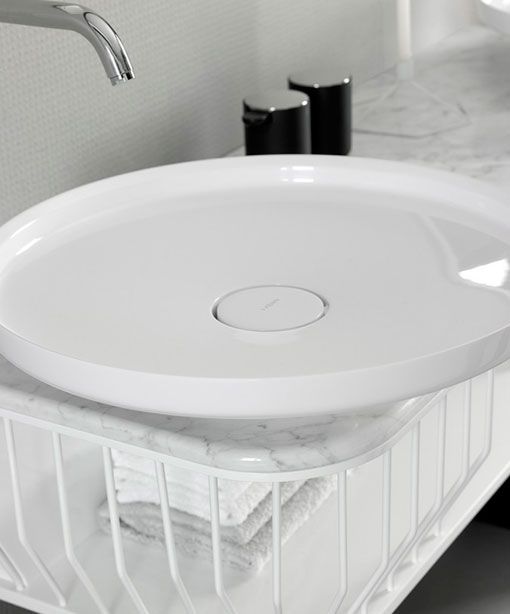 La colección Bowl es amplia y abarca la necesidad de diferentes usos, donde los denominadores comunes que definen el diseño transitan de una forma a otra, y de una tipología a otra. En definitiva, esta colección se presenta como un paisaje de combinaciones reducidas e individuales de producto, para equipar con elementos funcionales, exclusivos y contemporáneos. Mientras que en los baños amplios, las piezas se alargan como el lavabo de pie, en espacios más reducidos, los muebles bajo lavabo son especialmente funcionales.