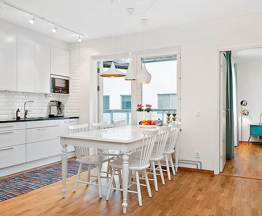 Con esta posición de plano, puede verse con toda claridad, la cantidad de armarios con que cuenta la casa. En el dormitorio principal, por ejemplo, se distingue perfectamente un armario de tres cuerpos con puertas correderas. Con las mismas dimensiones es el armario colocado en la habitación de los niños. Vía: Svenska Maklarhuset.