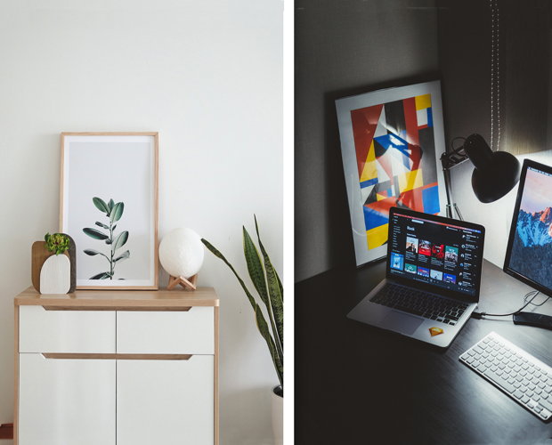 Antes de lanzarte a imprimir fotos sin ton ni son, tienes que hacer un ejercicio de visualización de donde vayas a colocarlas. Incluso, puedes hacer una selección de fotos en el ordenador para ver pruebas y montajes con distintos formatos, estilos y colores. El resultado final deberá encajar con el estilo de los muebles y el color de las tapicerías, además de tener un tamaño proporcionado con las dimensiones de las estancias.