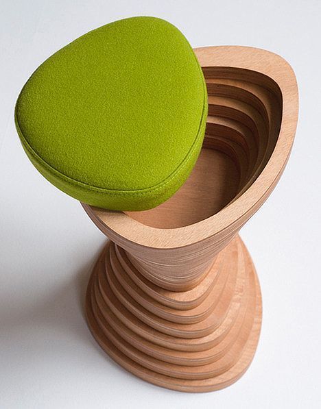 Y en la naturaleza se inspiró la diseñadora holandesa Janina Loeve a la hora de crear su colección Tettonica, una mesa auxiliar y un taburete realizados en madera africana de Okoume, una variedad de color rosa pálido, textura bastante fina que, si bien en ocasiones presenta cierto dibujo, generalmente es de grano recto. Ambas piezas están formadas por anillos apilados que recuerdan la forma de un cañón natural.